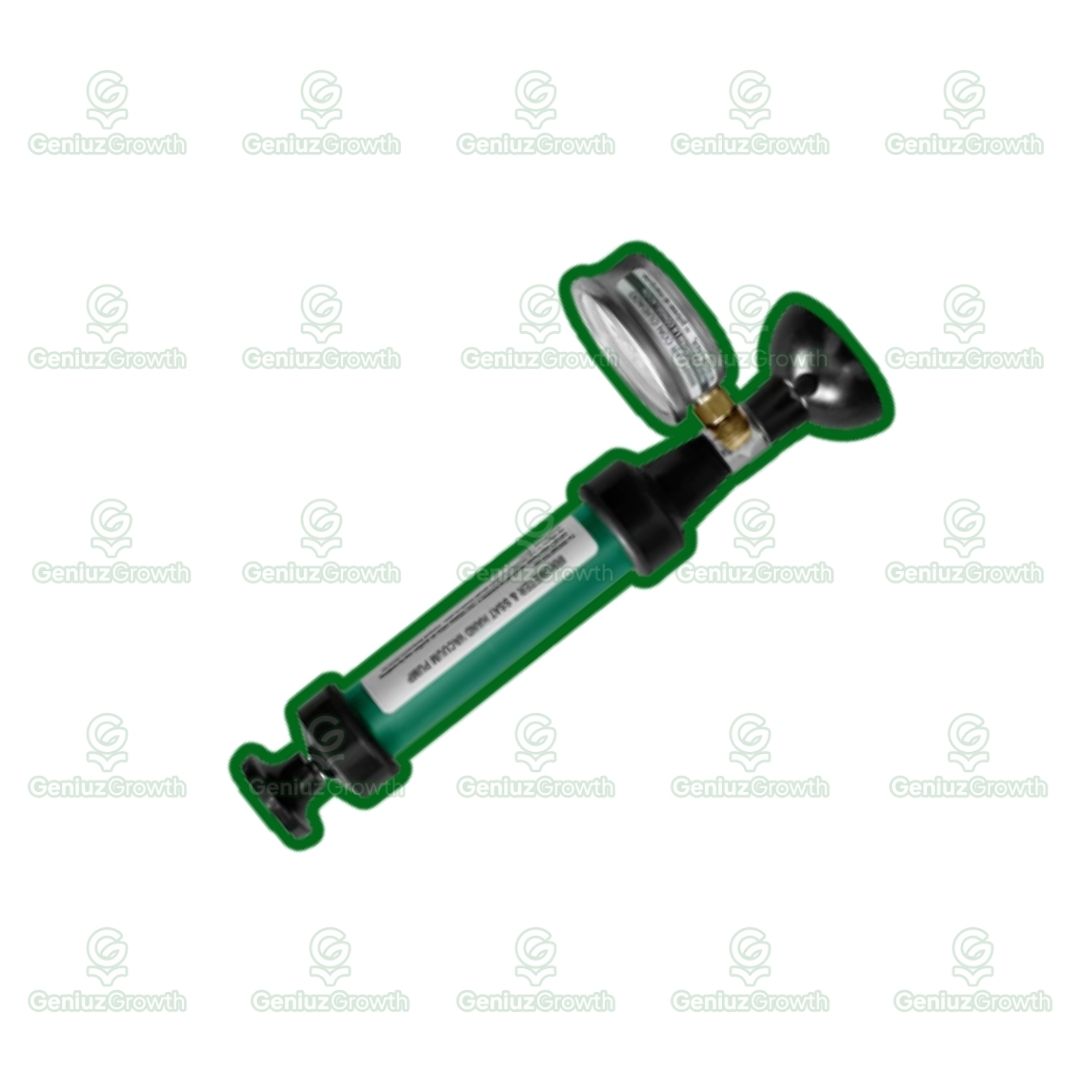 La bomba de vacío con manómetro para tensiómetro es una herramienta fundamental para la correcta instalación y mantenimiento de tensiómetros, ya que evacúa el aire atrapado dentro del instrumento, optimizando la precisión y reduciendo el tiempo de respuesta en la medición de humedad del suelo.