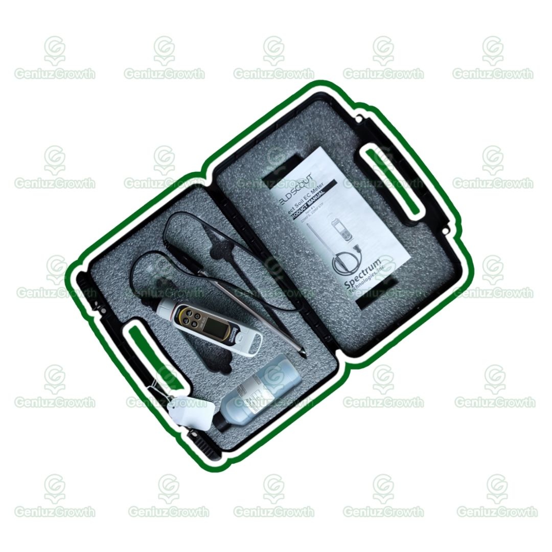 El medidor de CE en suelo directo FieldScout® es un medidor portátil de conductividad eléctrica (EC) diseñado para realizar mediciones directas en suelo, soluciones de riego y fertilizantes líquidos. Su diseño robusto y su facilidad de uso lo hacen ideal para agricultura, horticultura, manejo de césped y control de calidad del agua.
